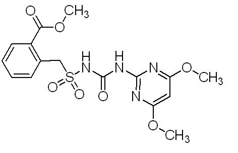 別名  芐嘧磺隆 ;2-{〔(4,6-二甲氧基嘧啶-2-)氨基碳基〕氨基磺基甲基}苯甲酸甲酯,N-(4,6-二甲氧基嘧啶-2-)鄰甲酸甲酯芐基磺酰脲,農得時,芐嘧磺隆,3-(4,6-二甲氧基嘧啶-2-)-1-(2-甲氧基甲酰基芐基)磺酰脲;