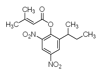 別名 樂殺螨 ;2-仲丁基-4,6-二硝基苯基-3,3-二甲基丙烯酸酯;2-(1-Methylpropyl)-4,6-dinitrophenyl 3-methyl-2-butenoate