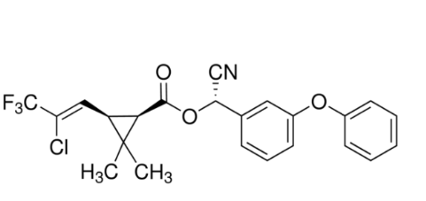 別名  三氟氯氰菊酯;2,2-二甲基-3-(2--3,3,3-三氟-1-丙烯基)環丙烷羧酸-α-氰基-3-苯氧基芐酯;Cyano-3-phenoxybenzyl (1S+1R)-cis-3-(z-2-chloro-3,3,3-trifluoroprop-1-enyl)-2,2-dimethyl cyclopropanecarboxylate;Lambda cyhalothrin;
