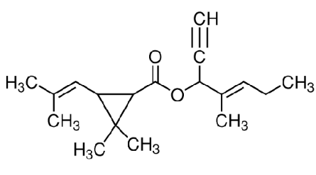 別名  烯炔菊酯 ;右旋反式炔戊菊酯, 烯炔菊酯,右旋-反式-2,2-二甲基-3-(2-甲基-1-丙烯基)環丙烷羧酸 (E)-1-乙炔基-2-甲基--2-烯基酯;1-Ethinyl-2-methyl-2-penten-1-yl chrysanthemate