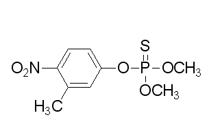 別名  速滅蟲;蘇米松;殺螟松;O,O-二甲基-O-(3-甲基-4-硝基苯基)硫代磷酸酯;O,O-Dimethyl O-(3-methyl-4-nitrophenyl) phosphorothioate; Phosphorothioic acid O,O-dimethyl O-(3-methyl-4-nitrophenyl) ester; Nitrophos