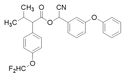 別名 氟氰戊菊酯 ;氟氰菊酯;中西氟氰菊酯;R,S)α-氰基-間苯氧基芐基(S)-2-(對(duì)二氟甲氧基苯基)-3-甲基丁酸酯;α-Cyano-3-phenoxybenzyl 4-difluoromethoxy-α-isopropylphenylacetate