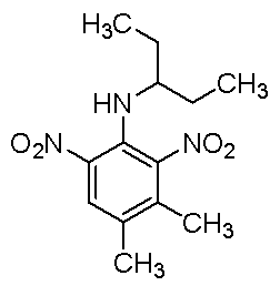 別名  二甲戊樂靈 ;二甲戊靈, 菜草靈, 施田補, 胺硝草,除草通,N-(1-乙基丙基)-2,6-二硝基-3,4-二甲基苯胺;