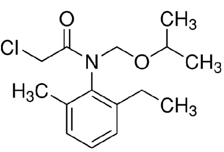 別名 異丙草胺 ;2-乙基-6-甲基-N-(1'-甲基-2'-甲氧乙基)氯代乙酰替苯胺,都爾,稻樂思,撲草胺 ;2-Chloro-2′-ethyl-6'-methyl-N-(isopropoxymethyl)acetanilide