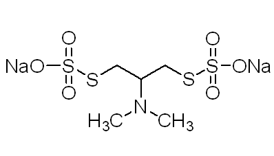 別名 殺蟲單 ;2-二甲氨基-1,3-雙硫代磺酸鈉基丙烷,2-二甲氨基-1,3-雙(硫代硫酸鈉)丙烷;Disodium S,S′-[2-(dimethylamino)trimethylene]di(thiosulfate)