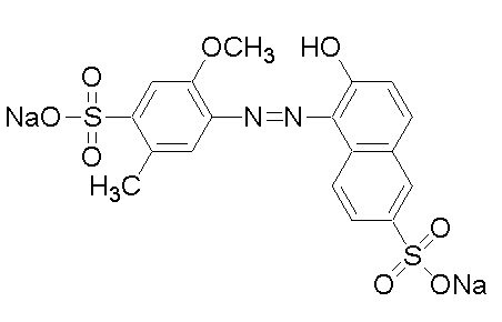 別名 誘惑紅 ;誘惑紅AC,6-羥基-5-[(2-甲氧基-5-甲基-4-磺本基)偶氮]2-萘磺酸二鈉鹽;FD and C Red No.40 ALLURA RED C.I. 16035