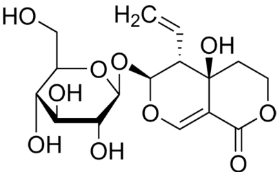 別名 獐芽菜苦苷;5-乙烯基-6-(beta-D-吡喃葡糖氧基)-4,4a,5,6-四氫-4a-羥基-1H,3H-吡喃并[3,4-C]吡喃-1-酮;獐牙菜堿;當藥苷;獐牙菜苷;(5R,6S)-5-Ethenyl-4a-hydroxy-6-[(2S,3R,4S,5S,6R)-3,4,5-trihydroxy-6-(hydroxymethyl)oxan-2-yl]oxy-3,4,5,6-tetrahydropyrano[5,4-c]pyran-1-one;(4aR,5R,6S)-5-Ethenyl-6-(β-D-glucopyranosyloxy)-4,4a,5,6-tetrahydro-4a-hydroxy1H,3H-pyrano[3,4-c]pyran-1-one 4,4a,5,6-Tetrahydro-4aα-hydroxy-1-oxo-5β-vinyl-1H,3H-pyrano[3,4-c]pyran-6-yl β-D-glucopyranoside ;Swertiamarine ;Swertiamaroside